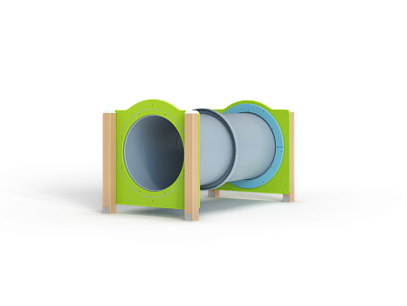 Спортивный комплекс состоит из пластиковой трубы перехода на несущих деревянных столбах.
