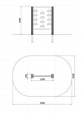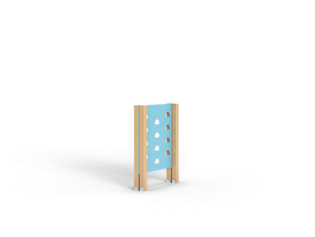 Спортивный комплекс выполнен в виде фанерной альпинистской стенки, установленной на несущих деревянных столбах.