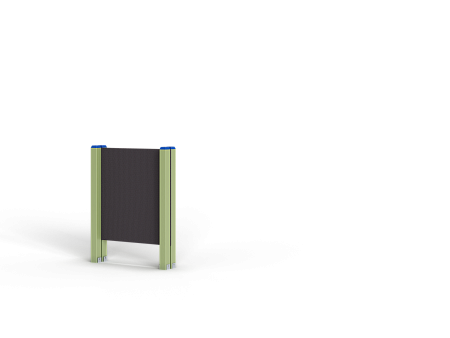 Спортивный комплекс выполнен в виде стенки для рисования из ламинированной влагостойкой фанеры, установленной на несущих деревянных столбах.