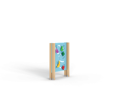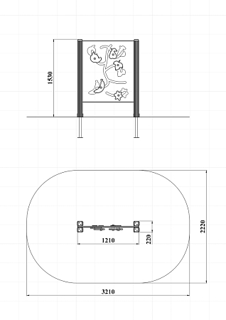 Спортивный комплекс выполнен в виде фанерной стенки с подвижными фанерными элементами, установленной на несущих столбах.
