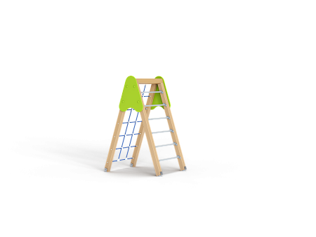 Спортивный комплекс выполнен в виде двух наклонных полипропиленовы сеток, крепящихся на несущие деревянные столбы.