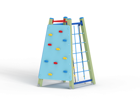 Спортивный комплекс представлен в форме трапеции, состоит из полипропиленовой сетки, полипропиленовой лестницы, альпинистской стенки и стенки с альпинистскими камнями.
