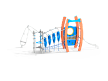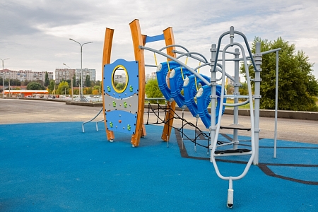 Универсальный комплекс состоит из гимнастических элементов и башни с подвесной площадкой и подвесной площадкой с лазом. Все металлические гимнастические элементы и столбы башни выполнены из стали с оцинкованным покрытием. Оцинковка металла производится методом электрохимической гальванизации. Деревянные стойки выполнены из тщательно отшлифованной древесины высочайшей прочности и окрашены высококачественным лаковым покрытием. Сетки и канаты изготовлены из многожильного армированного износостойкого каната. Площадки выполнены из экструдированного высокомолекулярного полиэтилена, стенки для лазания выполнены из HPL пластика. Лазы с отверстиями выполнены из высококачественного пластика.