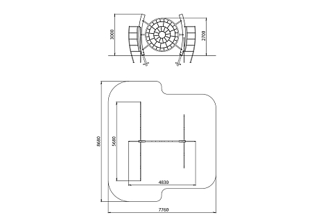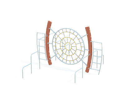 Универсальный комплекс состоит из гимнастического оборудования и двух изогнутых деревянных стоек. Между деревянных стоек крепится вертикальная круглая сетка на металлокаркасе. Все металлические гимнастические элементы выполнены из из нержавеющей стали. Деревянные стойки выполнены из тщательно отшлифованной древесины высочайшей прочности и окрашены высококачественным лаковым покрытием. Сетки изготовлены из многожильного армированного износостойкого каната.