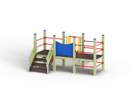 Манеж состоит из башни с горкой с высотой ската 700 мм, лестницы, металлических перекладин и фанерного ограждения.