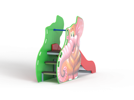 Горка с высотой ската 700 мм имеет перила в виде слоненка с ручной художественной росписью.