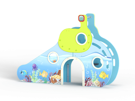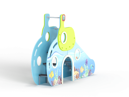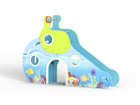 Горка с высотой ската 900 мм выполнен в виде подводной лодки с ручной художественной росписью.