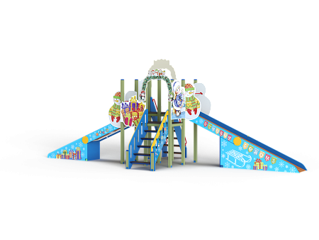 Комплекс состоит из башен с двумя зимними горками с высотой ската 1500 и 1800 мм, двух лестниц, декоративных арок и фанерных ограждений. Комплекс стилизован в новогодней тематике с ручной художественной росписью и устанавливается с помощью металлических опорных каркасов.