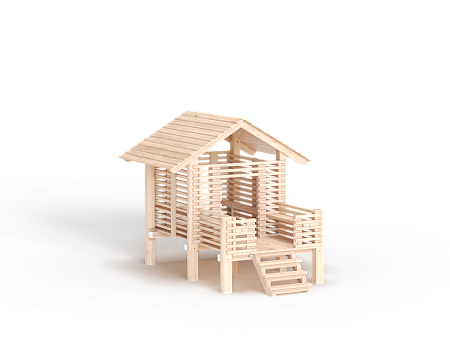 Первый - деревянные столбы и брёвна выполнены из лиственницы, имеют естественную природную форму, тщательно отшлифованы и обладают высочайшей прочностью.