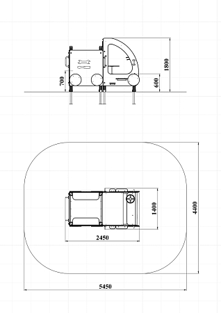 Машина выполнена из фанерных элементов в виде кабины и кузова. Кабина имеет вход с двух сторон, по две ступеньки и по две ручки с каждой стороны, вращающийся руль и сидение. Кузов - открытая площадка со входом в виде альпинистской стенки. На бортах кузова прикреплены декоративные элементы в виде слесарных инструментов.