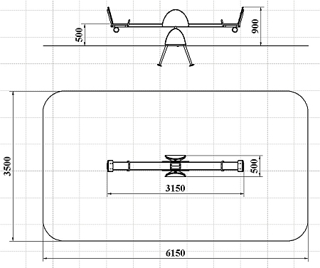 Качалка-балансир состоит из деревянного бруса, который крепится болтовым соединением на металлическом основании, качение производится с помощью подшипников качения. По краям деревянного бруса установлены металличесие каркасы сидения с фанерными спинками с художественным оформлением в стиле граффити и амортизирующие демпфера из армированной резины. По бокам металлического основания и по бокам бруса (в центре) крепятся декоративные фанерные накладки с художественным оформлением в стиле граффити.