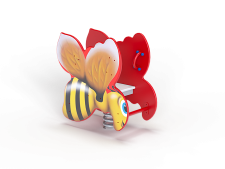Качалка на пружине в форме пчелки изготовлена из фанерных элементов с ручной художественной росписью и металлических элементов с пружиной.