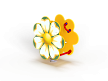 Качалка на пружине в форме ромашки изготовлена из фанерных элементов с ручной художественной росписью и металлических элементов с пружиной.