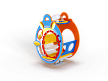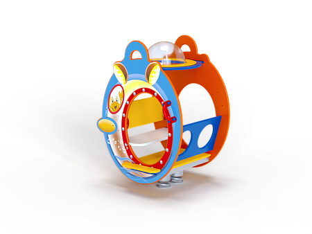 Качалка на пружине в форме батисферы изготовлена из фанерных элементов с ручной художественной росписью и металлических элементов с пружиной.