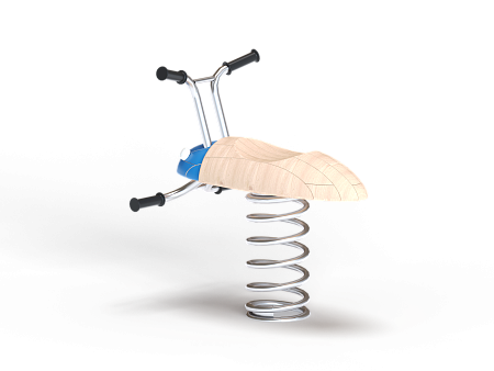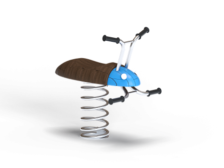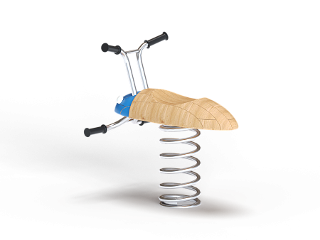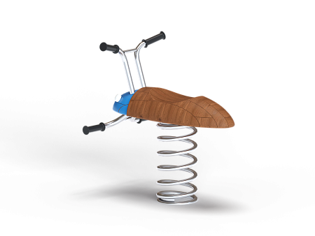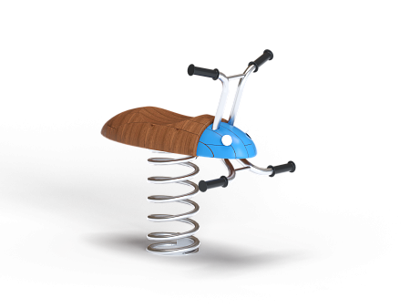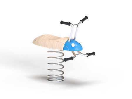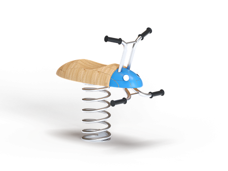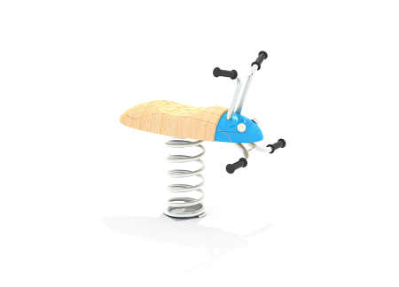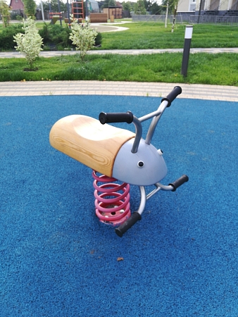 Качалка выполнена в виде жучка с ручками и подножками, раскачивающегося на пружине. Ручки и подножки выполнены из стали. Жук изготовлен из тщательно отшлифованной древесины высочайшей прочности.