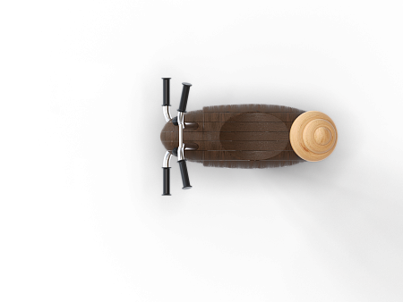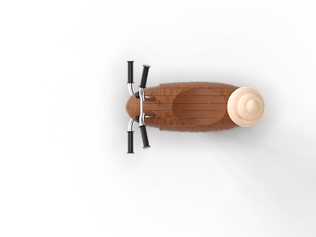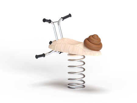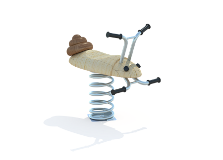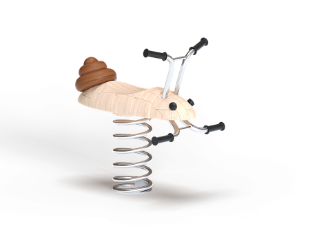 Качалка выполнена в виде улитки с ручками и подножками, раскачивающейся на пружине. Ручки и подножки выполнены из стали. Улитка изготовлена из тщательно отшлифованной древесины высочайшей прочности.