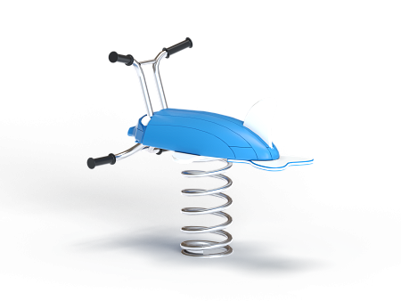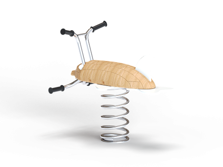 Качалка выполнена в виде дельфина с ручкой и подножками, раскачивающегося на пружине. Ручки и подножки выполнены из стали. Дельфин изготовлен из тщательно отшлифованной древесины высочайшей прочности.