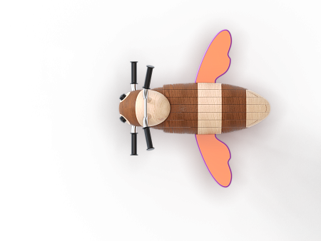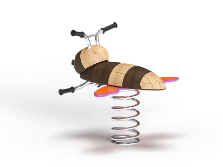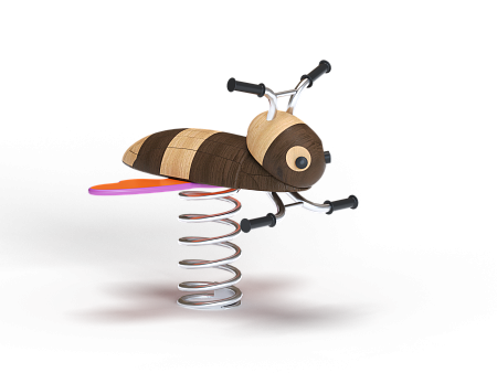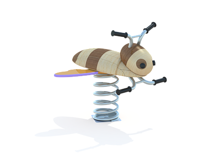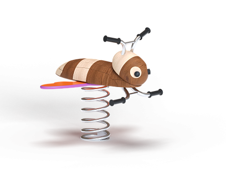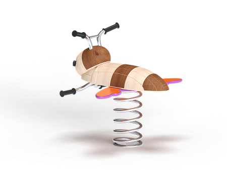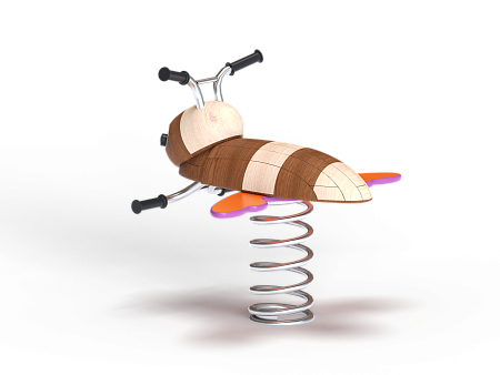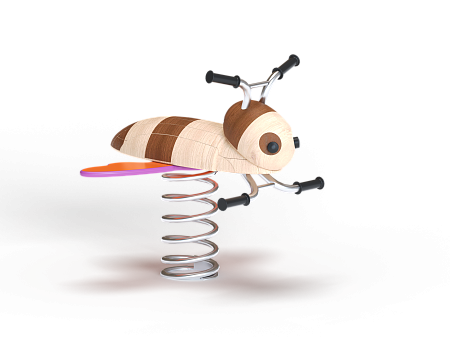 Качалка выполнена в виде пчелки с ручками и подножками, раскачивающейся на пружине. Ручки и подножки выполнены из стали. Пчелка изготовлена из тщательно отшлифованной древесины высочайшей прочности.
