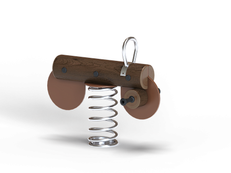 Качалка выполнена в виде бревна с ручкой, сердцевиной из HDPE пластика, пластиковой подножкой, раскачивающемся на пружине. Ручка выполнена из нержавеющей стали.