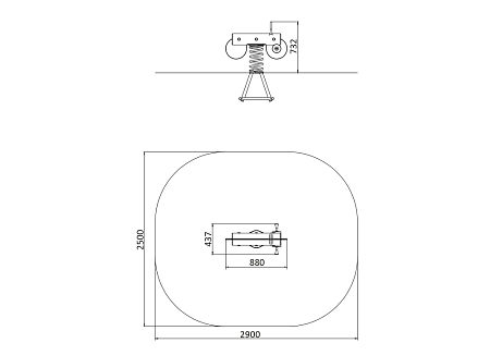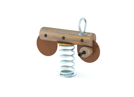 Качалка выполнена в виде бревна с ручкой, сердцевиной из HDPE пластика, пластиковой подножкой, раскачивающемся на пружине. Ручка выполнена из нержавеющей стали.