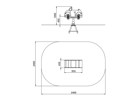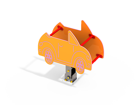 Качалка состоит из элементов выполненных из HPL пластика в форме деталей машинки и элементов выполненных из стали с оцинкованным покрытием. Оцинковка металла производится методом электрохимической гальванизации. Сиденье выполнено из экструдированного высокомолекулярного полиэтилена. Качение производится при помощи особых шарниров, при работе которых исключены места трения металлических компонентов шарнира, что в свою очередь влияет на долговечность, сокращает эксплуатационные расходы и позволяет шарниру работать практически без шума.