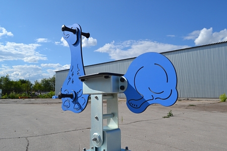 Качалка состоит из элементов выполненных из HPL пластика в форме собаки, пластиковых ручек и элементов выполненных из стали с оцинкованным покрытием. Оцинковка металла производится методом электрохимической гальванизации. Сиденье выполнено из экструдированного высокомолекулярного полиэтилена. Качение производится при помощи особых шарниров, при работе которых исключены места трения металлических компонентов шарнира, что в свою очередь влияет на долговечность, сокращает эксплуатационные расходы и позволяет шарниру работать практически без шума.