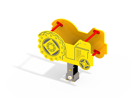 Качалка состоит из элементов выполненных из HPL пластика в форме деталей трактора и элементов выполненных из стали с оцинкованным покрытием. Оцинковка металла производится методом электрохимической гальванизации. Сиденье выполнено из экструдированного высокомолекулярного полиэтилена. Качение производится при помощи особых шарниров, при работе которых исключены места трения металлических компонентов шарнира, что в свою очередь влияет на долговечность, сокращает эксплуатационные расходы и позволяет шарниру работать практически без шума.