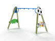 Качели состоят из четырех деревянных столбов, крепежных фанерных накладок в футбольном стиле с художественным оформлением и перекладины под два подвеса.