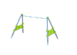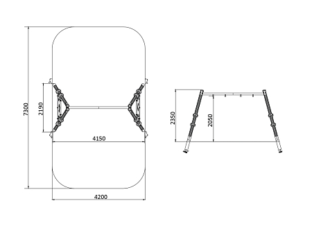 Качели состоят из столбов выполненных из древесно-полимерного композита (ДПК) диаметром 125 мм, имеют профиль с канавками. Стальной перекладины расчитанной на крепление двух сидений. Все металлические элементы выполнены из стали с оцинкованным покрытием, с антивандальными и безопасными соединениями между собой. Оцинковка металла производится методом электрохимической гальванизации. Боковых накладок выполненых из HDPE пластика. Все используемые материалы закупаются у лучших производителей, что гарантирует высокие стандарты качества.