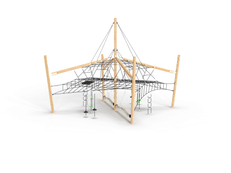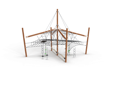 Комплекс выполнен в виде комбинации гимнастических элементов выполненных из столбов, бревен и сеток, в совокупности образующих купол с сеточным обвесом.