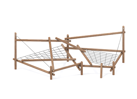 Первый - деревянные столбы и брёвна выполнены из лиственницы, имеют естественную природную форму, тщательно отшлифованы и обладают высочайшей прочностью.