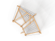 Второй — деревянные столбы и брёвна выполнены из клееной сосновой древесины с последующим оцилинриванием, имеет ровную цилиндрическую поверхность.