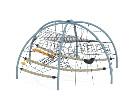 Металлические элементы каркаса комплекса выполнены из стали с оцинкованным покрытием. Оцинковка металла производится методом электрохимической гальванизации. Треугольные лазы выполнены из высокопрочного пластика.