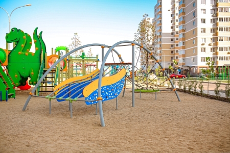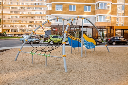 Металические элементы каркаса комплекса выполнены из стали с оцинкованным покрытием, с антивандальными и безопасными соединениями между собой. Оцинковка металла производится методом электрохимической гальванизации. Сетки и канаты изготовлены из многожильного армированного износостойкого каната. Стенки выполнены из экструдированного высокомолекулярного полиэтилена.