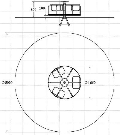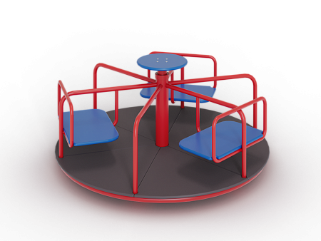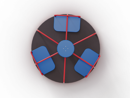 Карусель изготовлена из металлического каркаса с фанерным рулем, трёх фанерных сидений и пола из влагостойкой ламинированной фанеры.