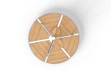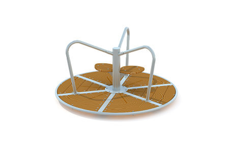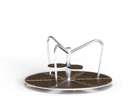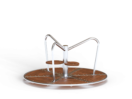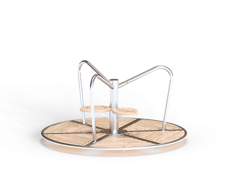 Карусель состоит из металлического каркаса с поручнями изготовленных из стали с оцинкованным покрытием, сидений и площадки выполненных из тщательно отшлифованной древесины высочайшей прочности и окрашены высококачественным лаковым покрытием. Оцинковка металла производится методом электрохимической гальванизации.