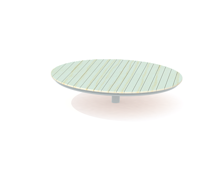 Карусель состоит из стального каркаса с оцинкованным покрытием. Площадка выполнена из тщательно отшлифованной древесины высочайшей прочности и окрашены высококачественным лаковым покрытием. Оцинковка металла производится методом электрохимической гальванизации.