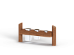 Второй — деревянные столбы и брёвна выполнены из клееной сосновой древесины с последующим оцилинриванием, имеет ровную цилиндрическую поверхность.