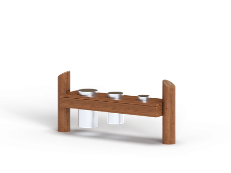 Первый - деревянные столбы и брёвна выполнены из лиственницы, имеют естественную природную форму, тщательно отшлифованы и обладают высочайшей прочностью.