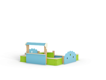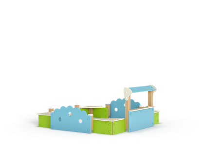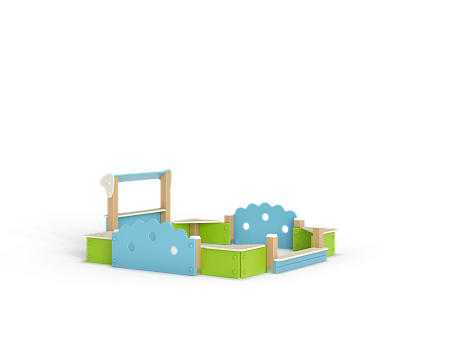 Песочница состоит из столбов с прикрепленными к ним по периметру фанерными ограждениями.. На столбах напротив входа установлен спойлер.