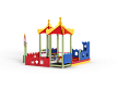 Песочный дворик – модульная конструкция из игровых и развивающих элементов с шахматной тематикой. Конструкция оборудована двумя башнями беседками, одной аркой, песочницей, ограждением по периметру из деревянного бруса и фанеры с декоративными накладками с художественным оформлением. Башни беседки оборудованы крышами, металлическими перекладинами, фанерными ограждениями, детскими счетами с пластиковыми бубликами и сидениями. Песочница с четырьмя фанерными накладками и декоративным фанерным ограждением в наружном углу в форме шахматной фигуры ладья.