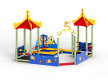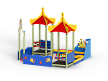 Песочный дворик - модульная конструкция из игровых и развивающих элементов с морской тематикой. Конструкция оборудована двумя башнями - беседками, одной аркой, песочницей и ограждением по периметру из деревянного бруса и фанеры с художественным оформлением. Башни оборудованы крышей, фанерными ограждениями и детскими счетами с пластиковыми бубликами. Арка выполнена из фанеры в форме золотой рыбки с художественным оформлением. Песочница с четырьмя фанерными накладками и декоративным фанерным ограждением в наружном углу в форме морской волны с художественным оформлением в виде золотых рыбок.