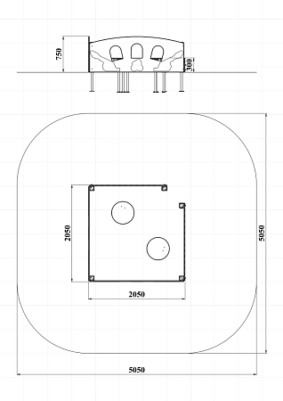 Песочница с художественным оформлением стилизованым под битву при Бородино, состоит из столбов с прикрепленными к ним по периметру фанерным ограждением Внутри песочницы установлены два круглых столика на металлических ножках.