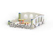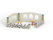 Песочница с художественным оформлением стилизованым под битву при Бородино, состоит из столбов с прикрепленными к ним по периметру фанерным ограждением Внутри песочницы установлены два круглых столика на металлических ножках.