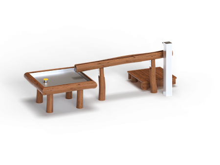 Первый - деревянные столбы и брёвна выполнены из лиственницы, имеют естественную природную форму, тщательно отшлифованы и обладают высочайшей прочностью.