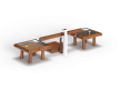 Второй — деревянные столбы и брёвна выполнены из клееной сосновой древесины с последующим оцилинриванием, имеет ровную цилиндрическую поверхность.