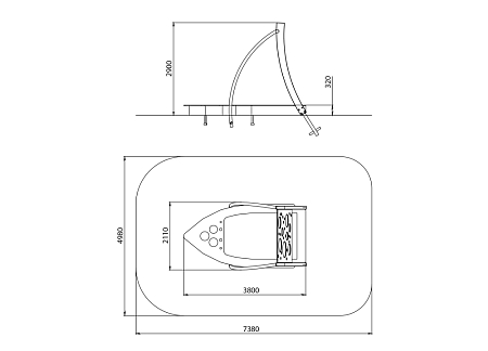 Универсальный комплекс состоит из двух изогнутых деревянных стоек, стенок и бортиков из HPL пластика. Элементы комплекса скомпанованы в виде лодочки. Все металлические элементы комплекса выполнены из нержавеющей стали. Деревянные стойки выполнены из тщательно отшлифованной древесины высочайшей прочности и окрашены высококачественным лаковым покрытием.