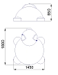Свинья представляет собой конструкцию основой, которой является цельный каркас в виде двух полусфер разного диаметра, большая (диаметром 1350 мм) из которых является телом свиньи, малая (диаметром 800 мм) – головой свиньи. Каркас изготовлен на основе композитных материалов.