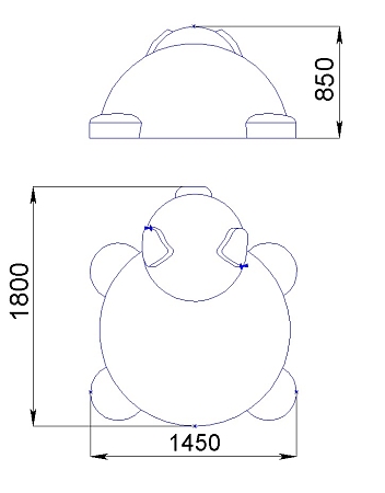 По всей площади каркас покрыт слоем цветной искусственной каучуковой TPV крошки. Цвет гранулята распределен по поверхности каркаса таким образом, чтобы поверхность представляла собой расцветку свиньи.