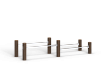 Первый - деревянные столбы и брёвна выполнены из лиственницы, имеют естественную природную форму, тщательно отшлифованы и обладают высочайшей прочностью.